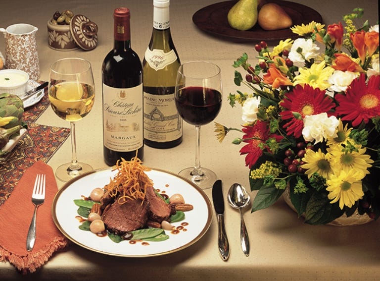Each bottle of wine is tenderly caressed as its characteristics are lovingly described prior to serving. The table is hushed as it learns of the wine's vintage, heritage, blush, fruity nose, supple taste, sweet aroma, lightness, elegance, finesse, its children, hobbies, indiscretions — whatever.